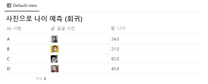 다음과 같이 사진으로 나이를 예측하는 알고리즘을 개발한다고 할 때,