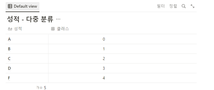 다음과 같이 클래스가 5개인 겨웅에는 다중분류(Multi-class classification, Multi-label classification)라고 부른다.