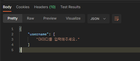 먼저 extra_kwargs가 없는 경우, (username을 입력하지 않았을 경우로 테스트 하였다.)